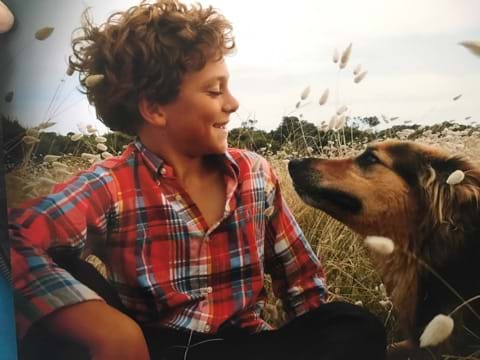 Mitchell was stubborn and very food driven, as we were on a farm he soon learnt how to catch rabbits, this became his obsession and eventually to his accident. He was a dog that sat at our farm gate shop and all would fall in love with him when they came. He led a charmed life here on the farm and loved riding on the 4 wheeler and utes. As he got older we thought he would slow down as he had a few health issues, but no he didn't. Mitchell loved watching TV, this could sometimes become a problem as he would become quite vocal but funny, he could spot a dog in whatever was on and start crying, as he got older and his eye sight started to fail it would be any animal on the television.