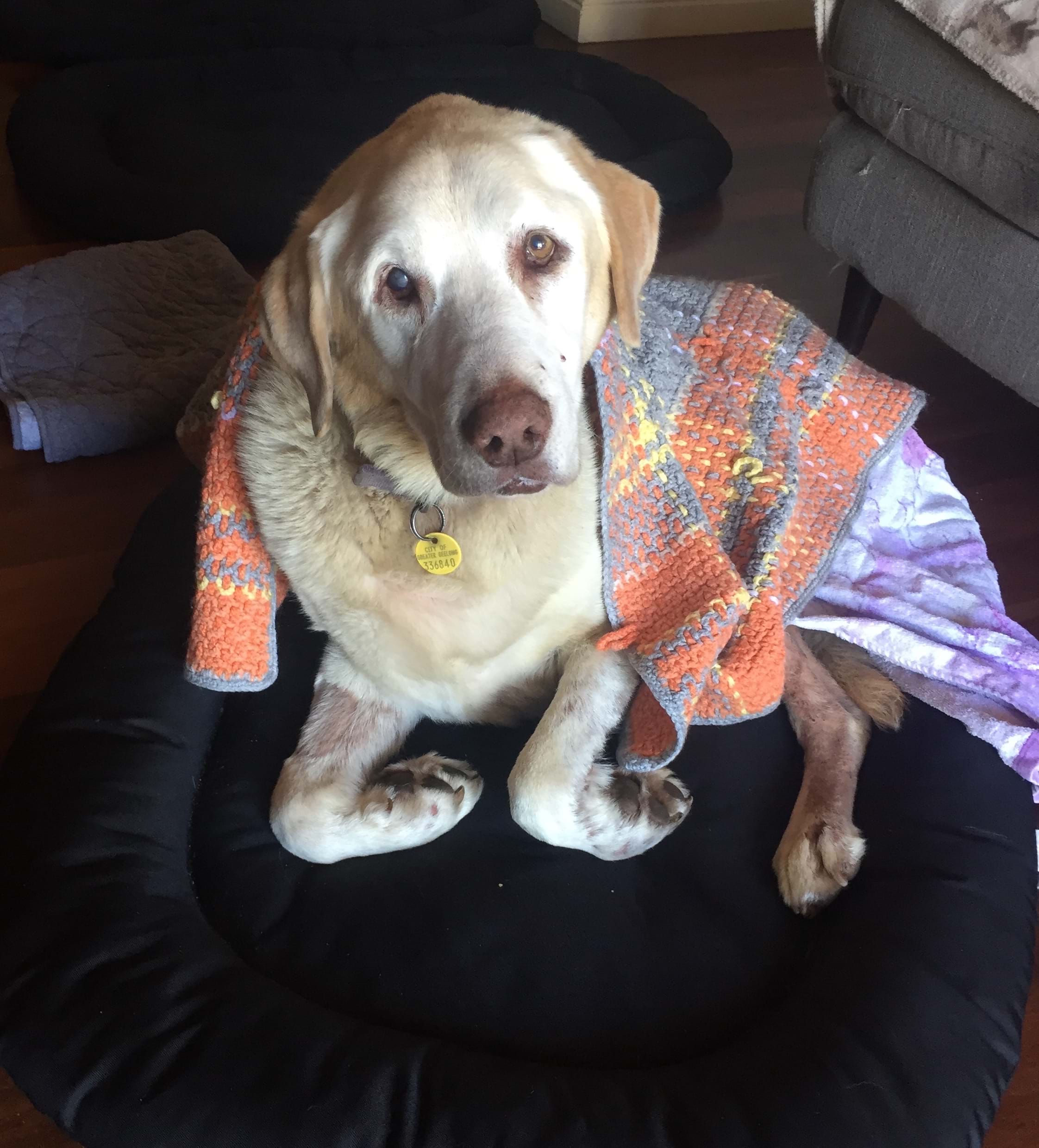 His foster carer Esther went way above and beyond her duty to give this beautiful old boy a peaceful, comfortable, and pain-free final few months in her loving care. Husky had some significant health issues which we were able to manage for several months until his quality of life declined and it was time to assist him on his journey to the other side.